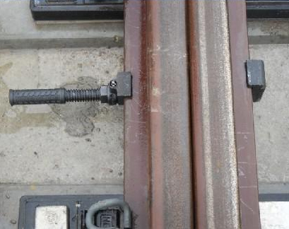 a:頂式頂鎖器,先把頂鎖器調到最短處,頂鎖器下卡槽處卡在基本軌底邊,頂絲端部對準斥離軌,調節中部絲桿頂到斥離軌,最后用鉤型扳手扭緊,再把防松螺母鎖緊,最后把防盜罩蓋上,上鎖鎖閉。拆除時反方向程序進行。