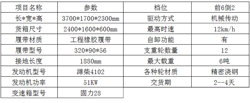 6000型履帶運輸車技術參數