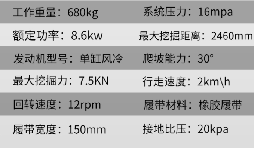 DLS08微型履帶挖掘機參數