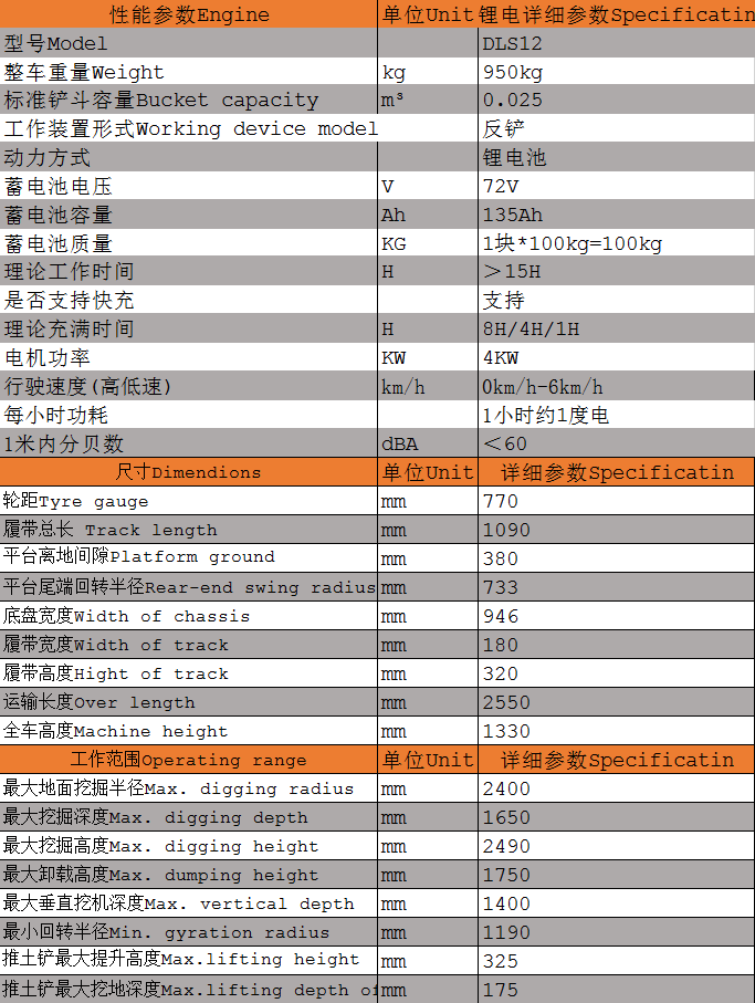 DLS12電動(dòng)小型履帶挖掘機(jī)參數(shù)
