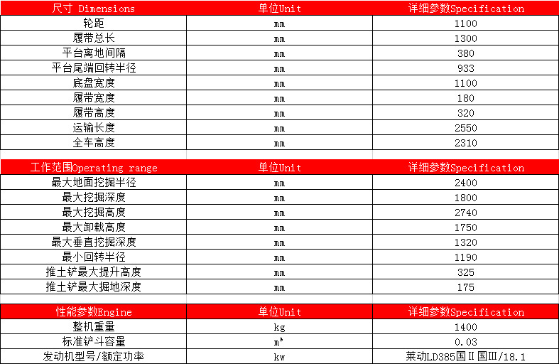 DLS18微型履帶挖掘機(jī)參數(shù)