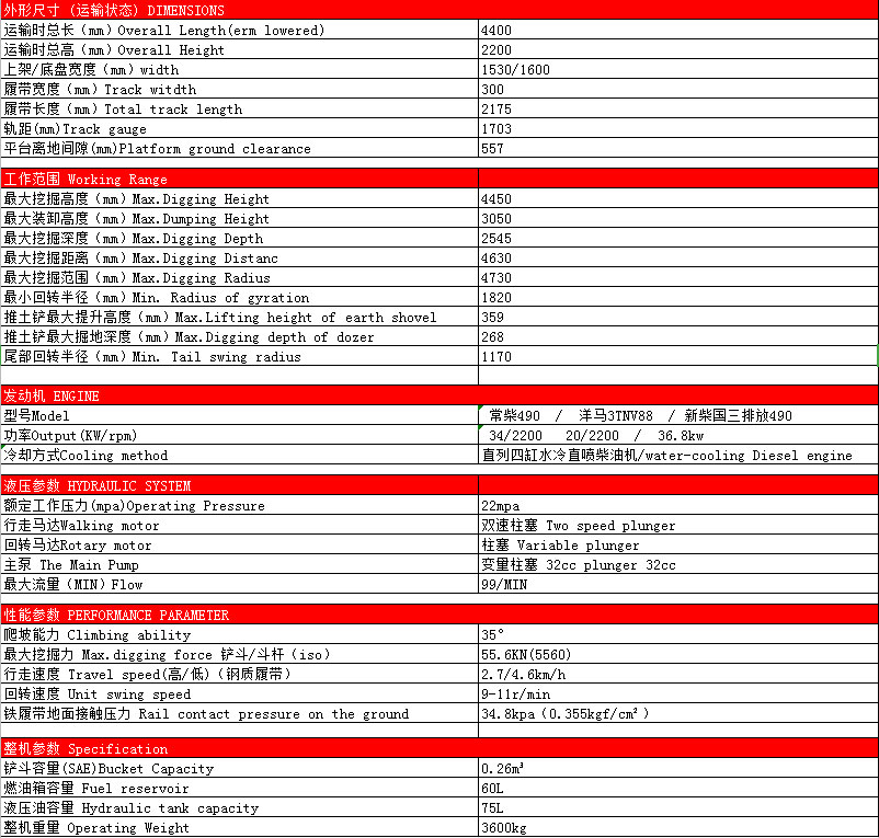 DLS35微型履帶挖掘機(jī)參數(shù)