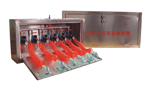 2、使用: 當井下發生煤與瓦斯突出危及在場人員生命或發現有煤與瓦斯突出預兆時,或瓦斯嚴重超標,對工作人員有嚴重威脅時,現場工作人員要以最快的速度打開壓風裝置的箱門,再打開氣動閥,戴上面罩進行呼吸、待援