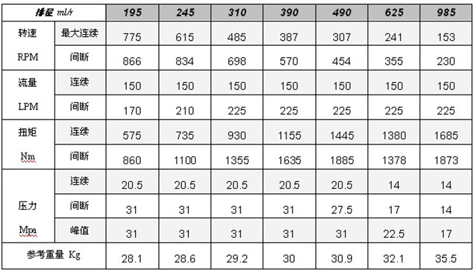· 最大入口壓力為 31 MPa ,但工作壓力差應符合上表要求
