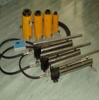 將拉桿(訂貨時請注明規格或根據實際檢測情況自備),擰到錨桿末端,如拉桿內螺紋外徑大于油缸中心孔,可在油缸底部增加中長套,再套上液壓缸(使活塞向外),然后擰上螺母并順時針擰緊泄荷閥。