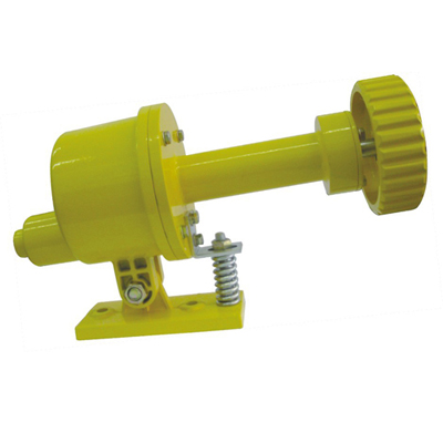 此款速度檢測器用于對輸送機帶速進行檢測的新型裝置,對帶速進行實時檢測,已廣泛應用于輸送系統(tǒng)中膠帶上,為膠帶機的安全運行提供了可靠的檢測手段。 需水平安裝在上行膠帶和下行膠帶間的輸送機支架上,使觸輪與膠帶表面有一定的壓力防止發(fā)生觸輪跳動而產生的誤動作。當觸輪隨膠帶機運行而帶動內的脈沖盤,在脈沖盤旋轉時傳感器的磁應信號輸入到控制電路中去,經放大,然后進行計數。其計數值與預置數比較,判斷膠帶的帶速,即:正常速度、打滑或超速等等。同時,執(zhí)行電路輸出相應的開關信號。